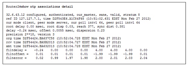 A. Because of a "root delay" of 0ms, this router is probably receiving its time directly from a Stratum 0 or 1 GPS reference clock.