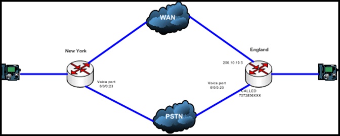 What are the two main ways from New York to call Extension 6001 in England? (Choose two.)