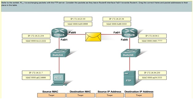 A. Drag the correct frame and packet addresses to their place in the table.