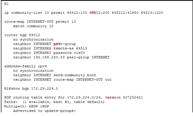 F. Modify the community list to match community 64513:64090 attached to 172.29.224.0/24.