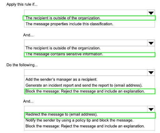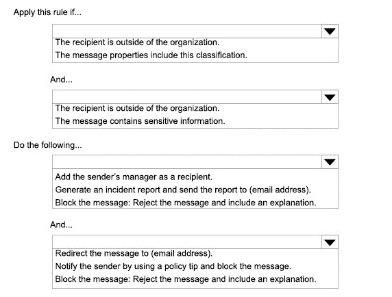 You need to configure a data loss prevention (DLP) policy to meet the compliance and security requirements.