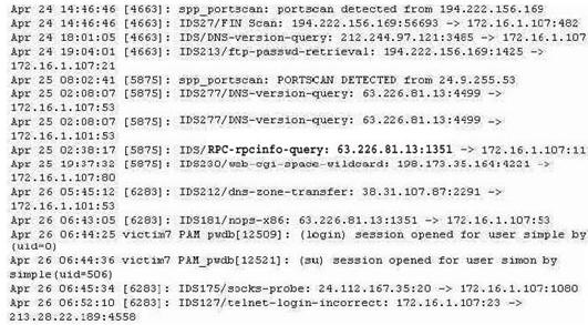 (Note: The objective of this questions is totest whether the student has learnt about passive OS fingerprinting (whichshould tell them the OS from log captures): can they tell a SQL injectionattack signature; can they infer if a user ID has been created by an attackerand whether they can read plain source – destination entries from log entries.)