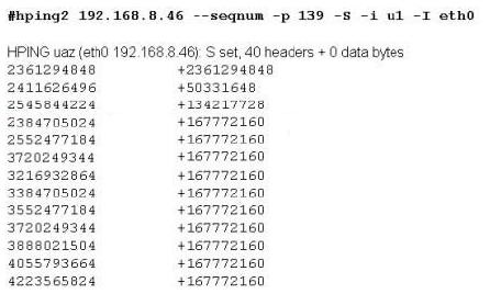 Joe Hacker runsthe hping2 hacking tool to predict the target host’s sequence numbers in one ofthe hacking session.