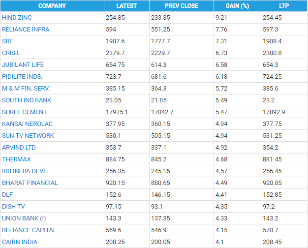 Nifty Midcap100 Index hit a new high after stocks like Hindustan Zinc, Shree Cement, Crisil, Reliance Infrastructure, Jubilant Life Sciences and Pidilite Industries rallied more than 6 per cent on the National Stock Exchange (NSE) on Monday. At 02:55 pm, Nifty Midcap100 index was up 2.7 per cent at 15,830, as compared to 1.5 per cent rise in the Nifty 50 Index. The midcap100 index hit a new high of 15,839 in intra-day trade, transcending its previous high of 15,817.90, touched on 29th September during the trade.